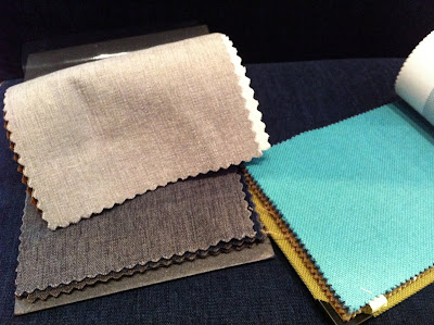 If you're interested in the details, we have selected a "gurney sack" like fabric that we thought was best in conveying a durable but luxurious quality. In color coordination, we chose light grey for the sofa, turquiose for the corner pipings and a darker shade of grey for the throw cushions.